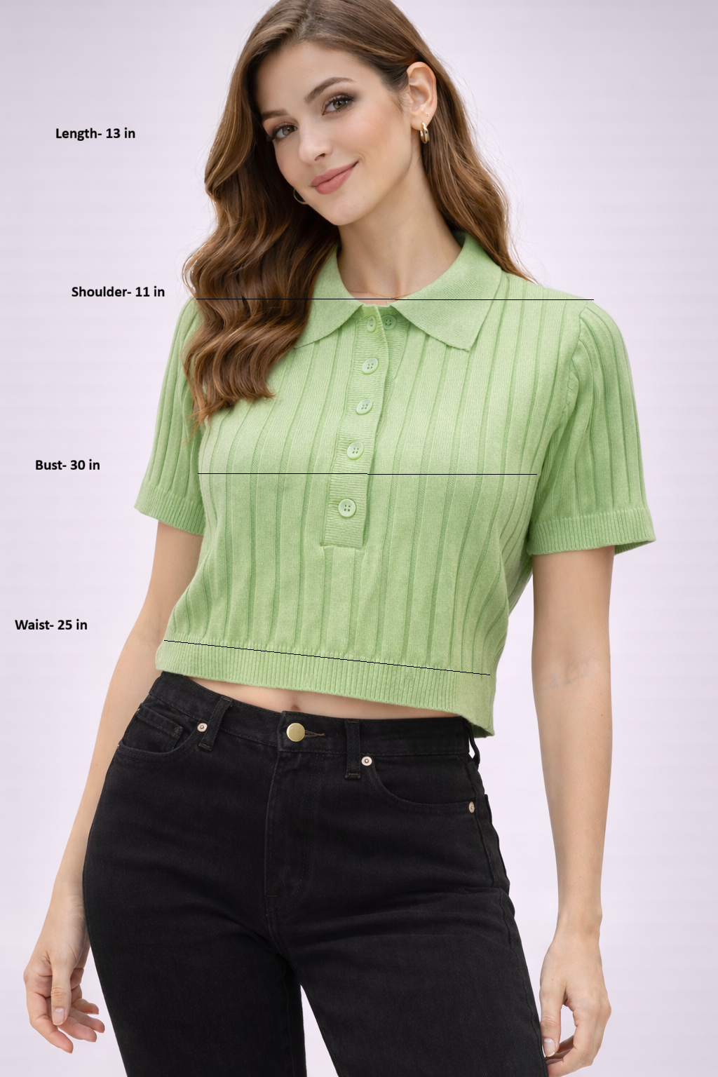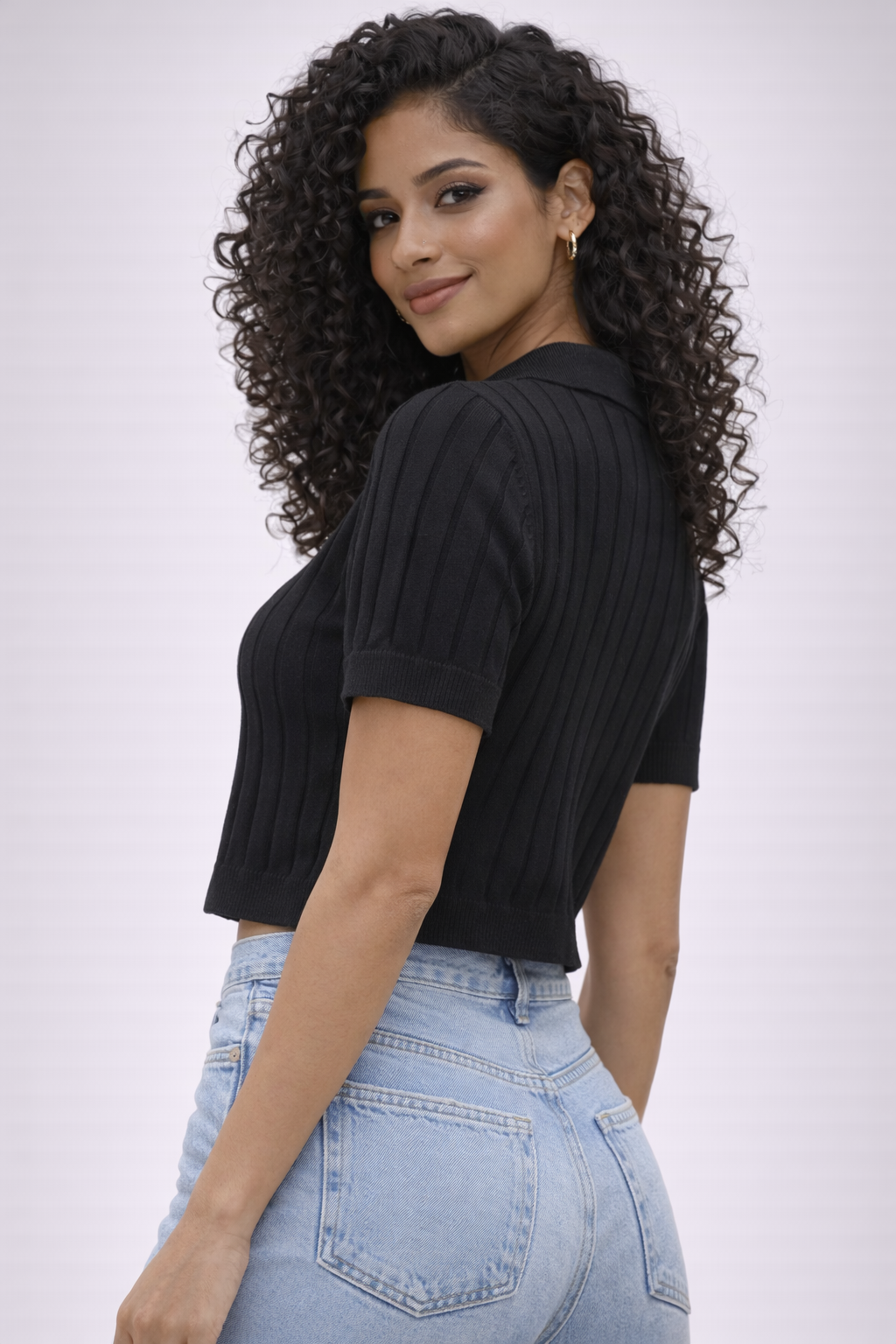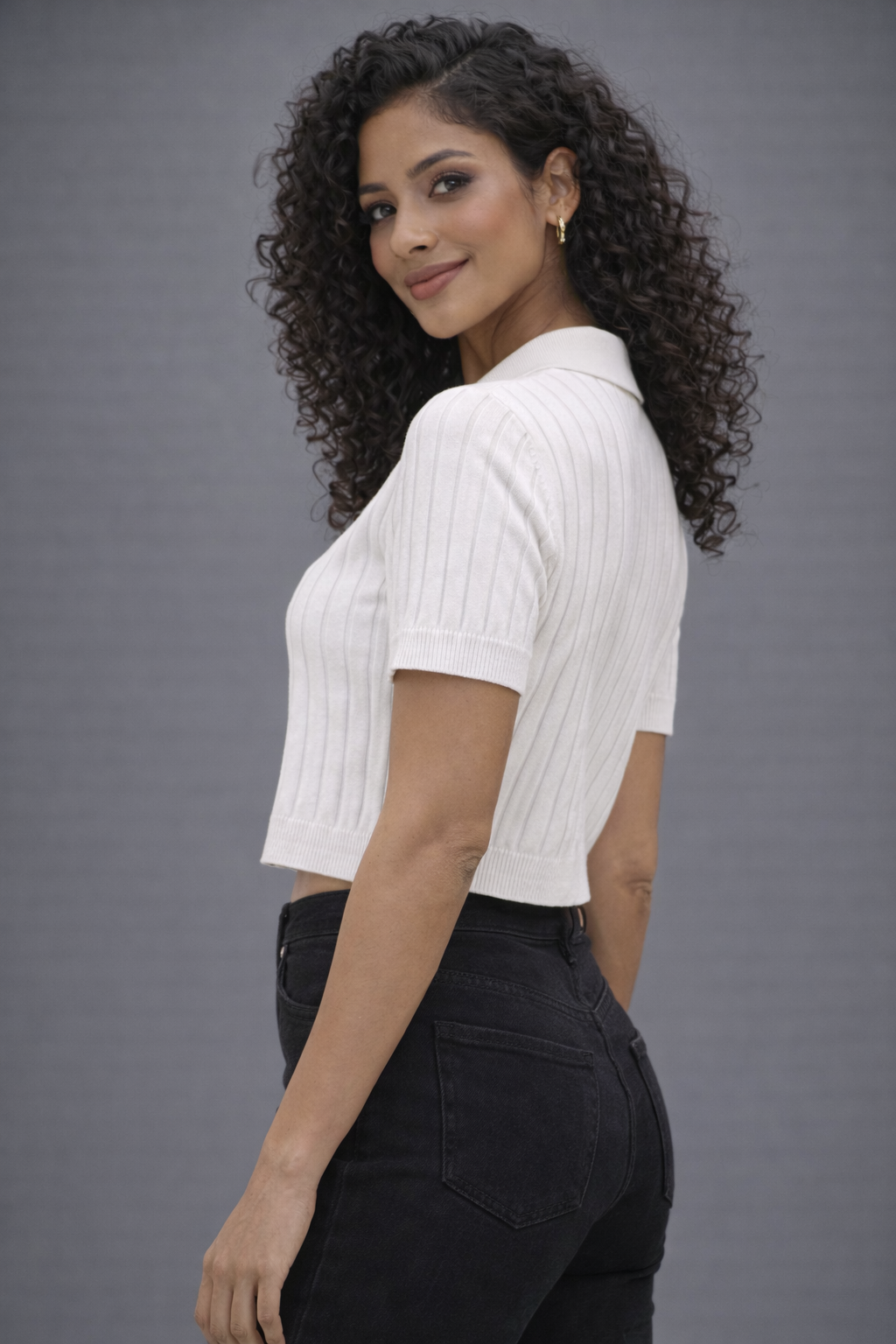 Elevate your everyday wardrobe with this refined ribbed knit polo crop top, designed to balance effortless elegance with modern comfort. Crafted in a soft, stretch-knit fabric, the vertical rib texture subtly contours the body, offering a flattering, streamlined silhouette.